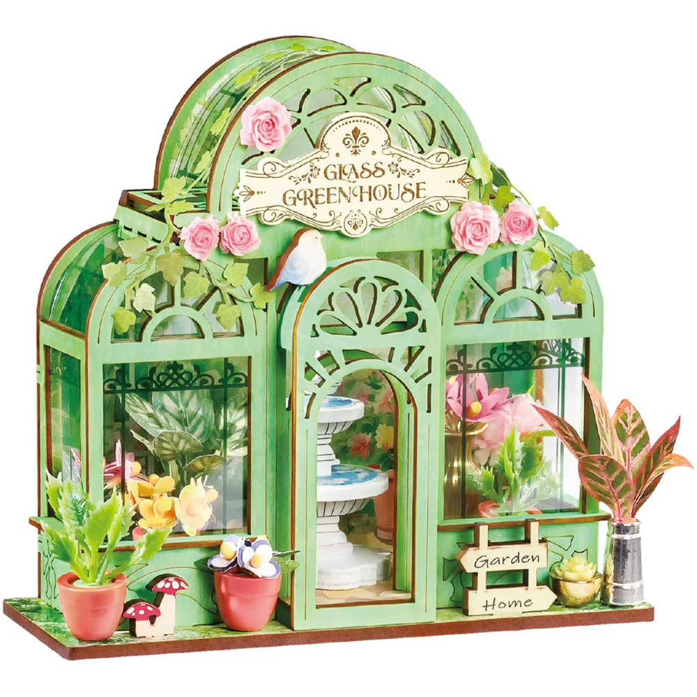 De Robotime Green Fountain Garden is een betoverend miniatuur bouwpakket van hout voor volwassenen en iedereen die 14+ is. De bloemenwinkel met lentegroene gevel met “glazen serre”, elegante boogramen en boogdeur straalt romantiek uit. Een klimroos met roze bloemetjes siert de muur en een tortelduifje zit op de entree. Binnen trekt een meerlaagse fontein meteen de aandacht.