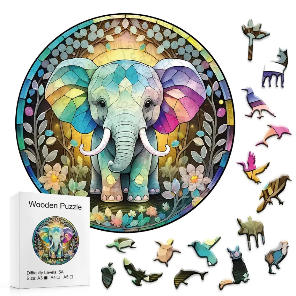 kleurrijke olifant, rond, M