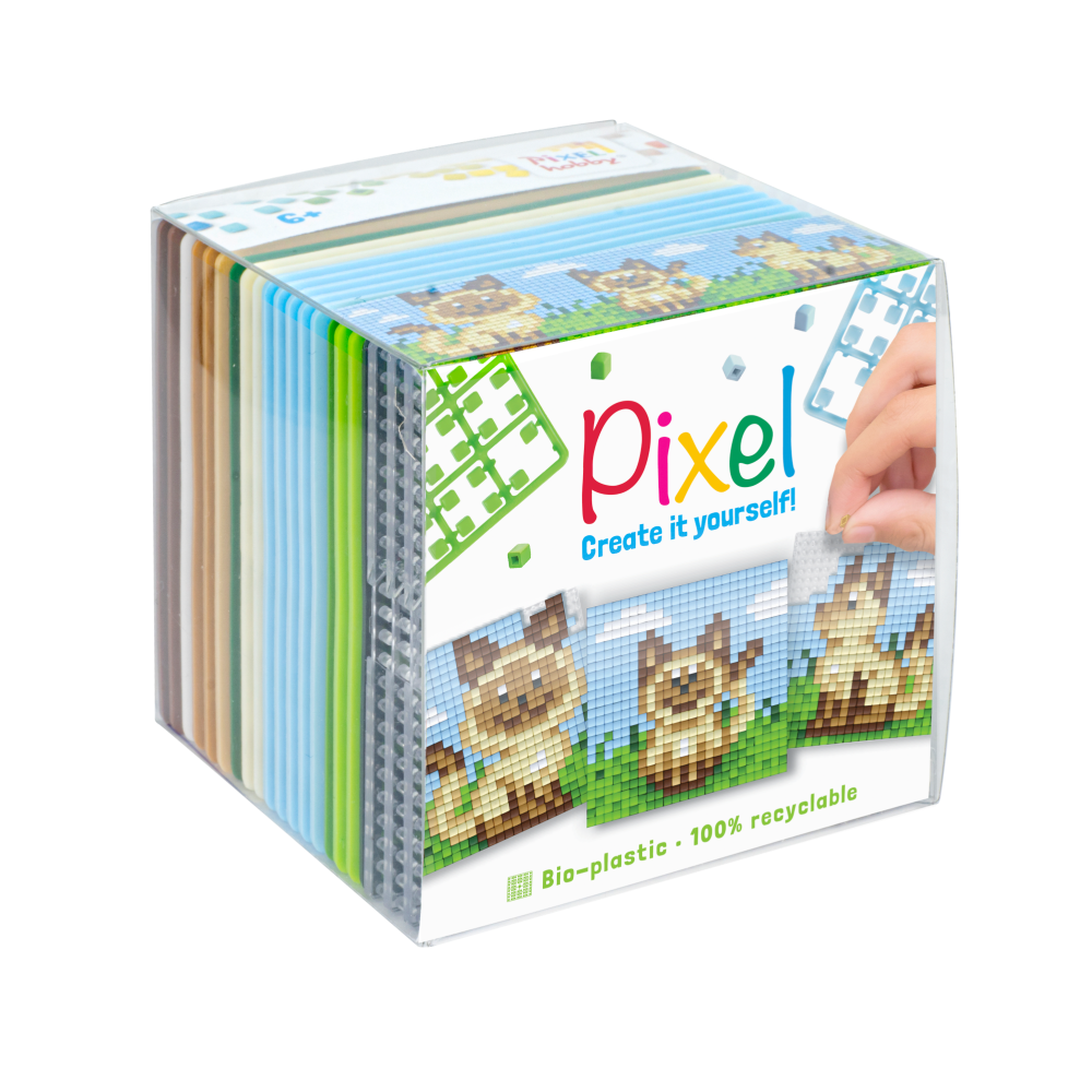 Pixel classic, 3 plannetjes, 3 kleine basisplaten en de benodigde kleuren.