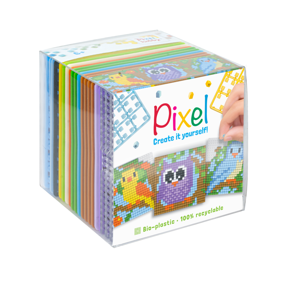 Pixel classic, 3 plannetjes, 3 kleine basisplaten en de benodigde kleuren.
