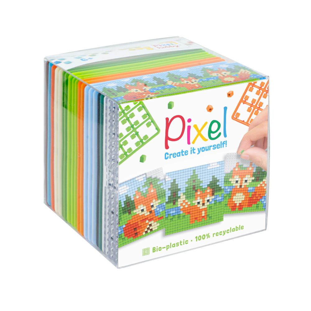 Pixel classic, 3 plannetjes, 3 kleine basisplaten en de benodigde kleuren.