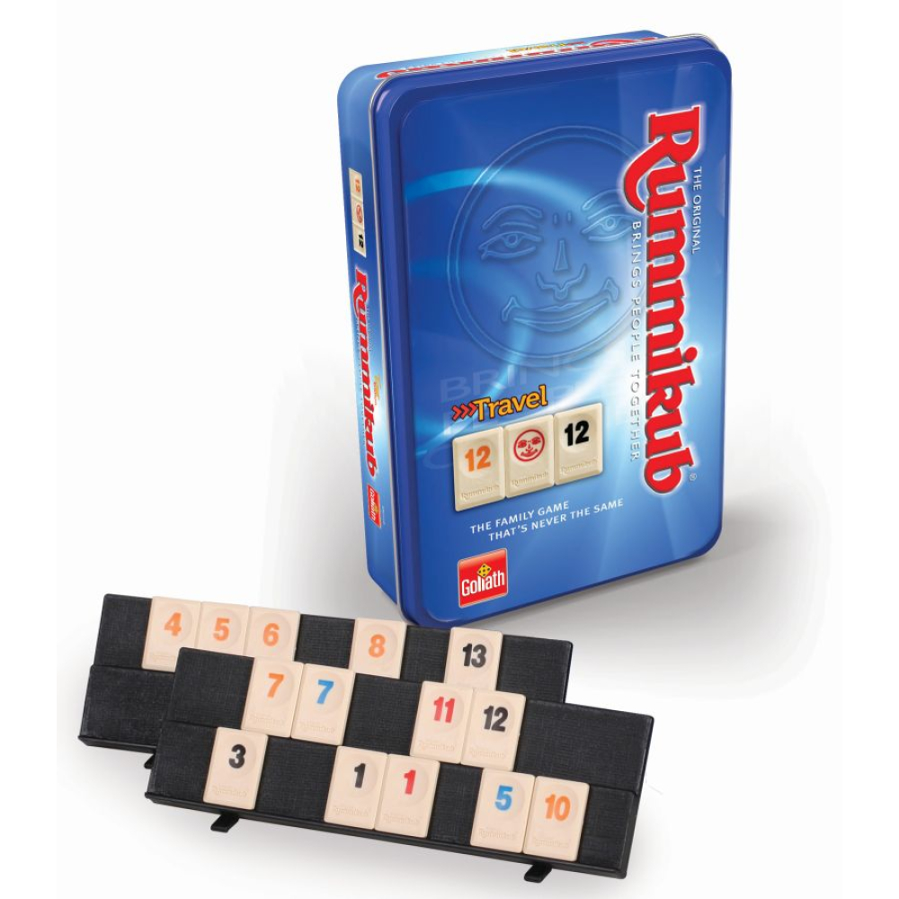 De compacte blikken doos bevat 106 stenen, 4 rekjes, spelregels.
