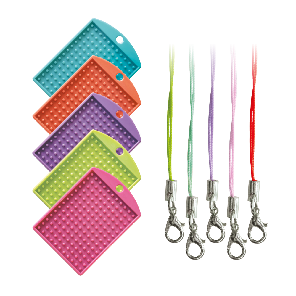 set van 5 niet-transparante sleutelhangers felle kleuren+ cords