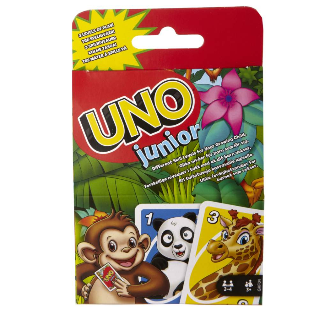 Het populaire kaartspel met dierenafbeeldingen voor de allerjongsten (én de niet zo jonge).Probeer als eerste al je kaarten kwijt te raken, gebruik actiekaarten tegen je tegenspelers en vergeet vooral niet "UNO!" te roepen wanneer je nog maar één kaart hebt.